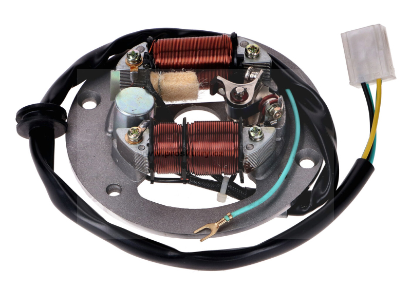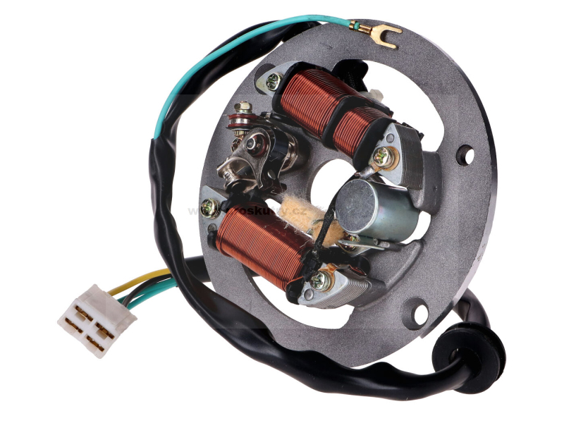 Zapalovací kotva, kompletně připravená k instalaci, se 4pinovým konektorem, vhodná pro mopedy Yamaha RD, DT, DX, TY 50cc a FS 1. Nepasuje na verze MX.