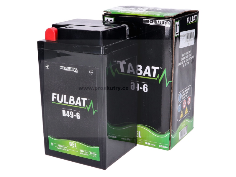 Baterie Fulbat B49-6 6V 10Ah GEL pro BMW R25, R69, Vespa Sprint, Rally, SS, Super Sport, DKW, EMW, Simson AWO Tours / Sport
