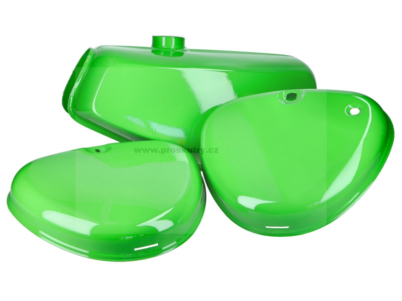 Dva boční kryty (levý a pravý) a palivová nádrž zelená lakovaná sada vhodná pro Simson S50, S51, S70.