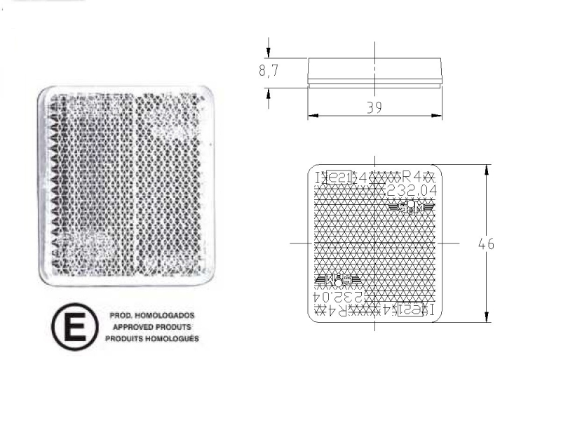 Bílá hranatá samolepící odrazka hranatá 46x39mm