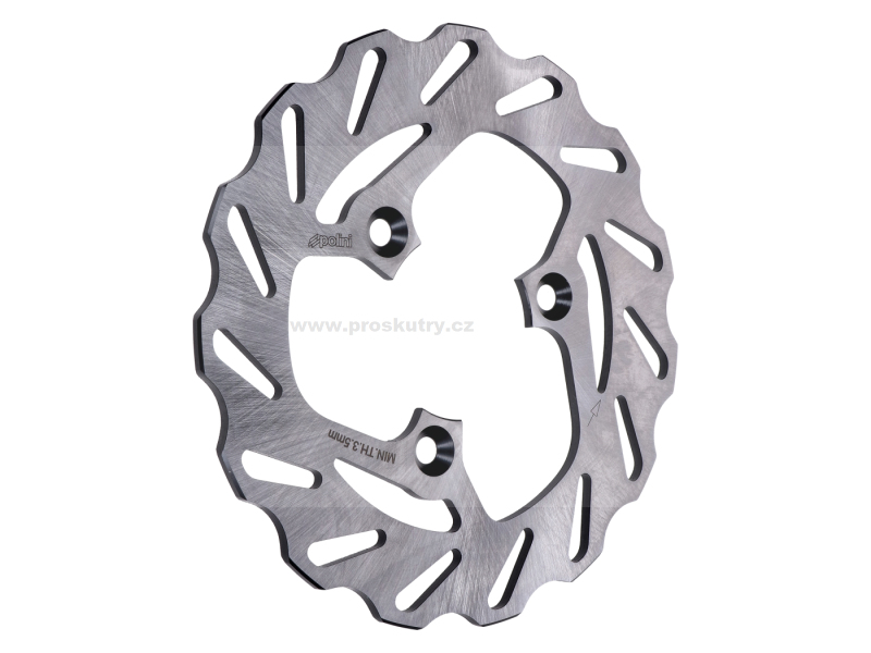 Brzdový kotouč Polini Wavy (Wave) určený pro skútry Aprilia, Gilera, Malaguti a Piaggio. Kotouč je vyroben z laserem řezané a tepelně zpracované nerezové chromové oceli, která zajišťuje vysokou odolnost proti opotřebení a deformaci.