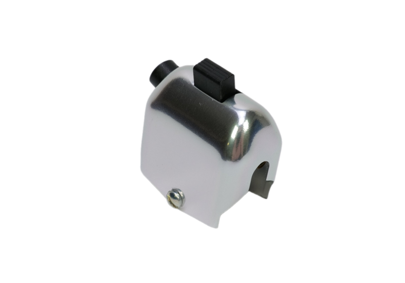 Přepínač světel s výřezem pro elektroinstalaci určený pro motocykly JAWA/ČZ (Jawa 50 – 20, 21 Pionýr, 23 Mustang). Tento typ přepínače je používán u modelů s elektroinstalací vedenou po vnější straně řídítek. Kryt (obal přepínače) je vyroben z hliníku (Aluminium).