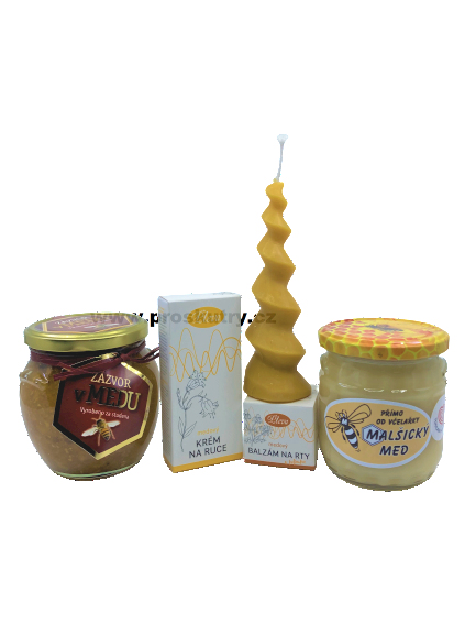 Dárková sada pod vánoční stromeček pro ženy potěší milovnice sladkých dobrot i péče o tělo. Sada obsahuje zázvor v medu, svíčku ze včelího vosku, Malšický med přímo od včelařky z Malšice u Tábora, medový balzám na rty a krém na ruce. Ideální kombinace pro sladké i voňavé Vánoce. 🎄