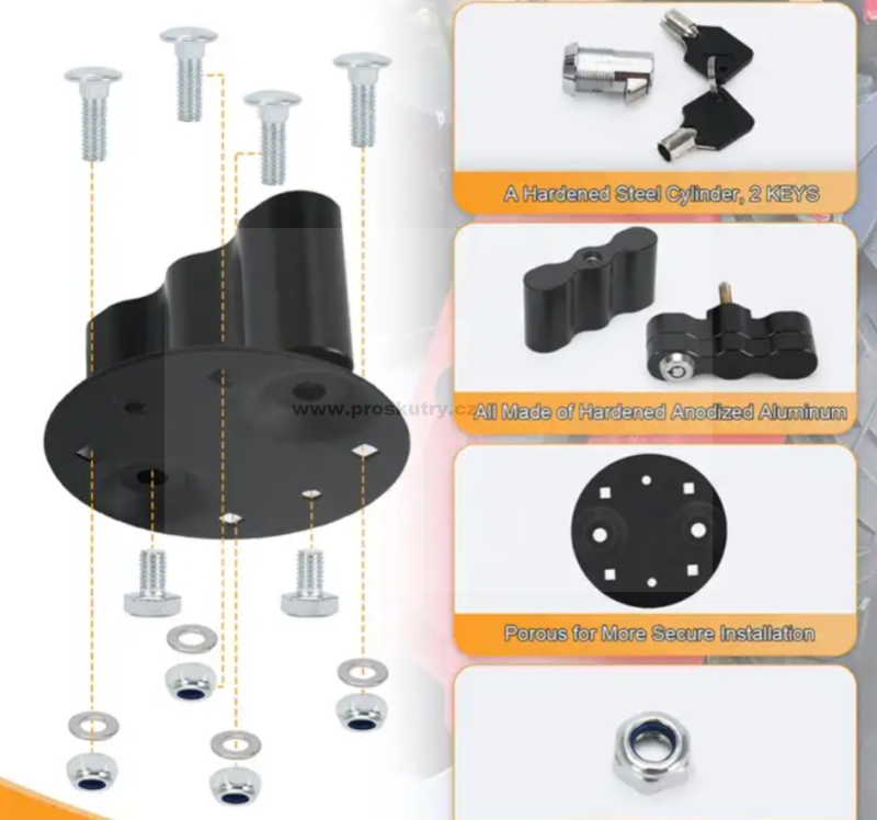 Vyroben z lehkého a odolného hliníku, s povrchovou úpravou chránící proti korozi.