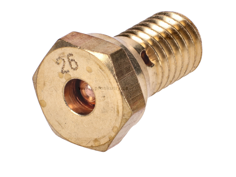Hlavní tryska do karburátoru určená pro mopedy Solex, velikost 26. Slouží k přesnému dávkování paliva v hlavním okruhu karburátoru a ovlivňuje směs paliva při vyšších otáčkách motoru.