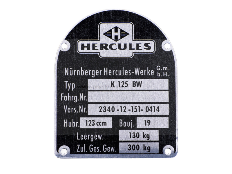 Hliníkový štítek černý 123 ccm pro Hercules, K 125 (2340-12-151-0414)