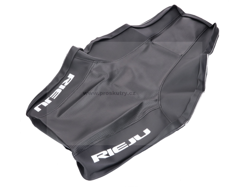 Potah sedadla na míru s bílým nápisem Rieju vhodný pro Rieju RR.