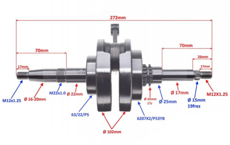 Kliková hřídel pro SYM Symphony, Fiddle, Allo 125cc 13000-ARA-010, 13000-ARA-0005, 13000-ARA-000
