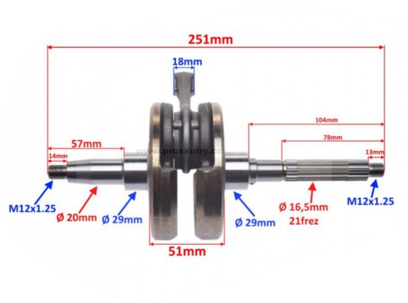 Kliková hřídel pro Piaggio 125 X-EVO, 125 X7, 125 X8, 125 X9, MP3, 125 Liberty