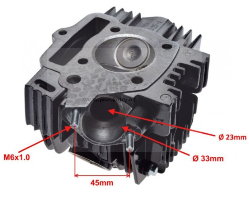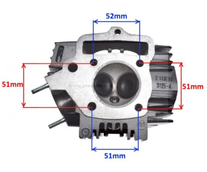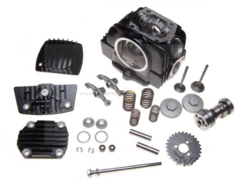 průměr spalovací komory: 55mm průměr otvoru pro řetězové kolo: 62 mm závit zapalovací svíčky: M12x1,25 ozubené kolo vačkového hřídele: rozteč montážních otvorů: 21 x 21 x 24mm průměr sedla: 17mm počet zubů: 28 průměr: 59mm |