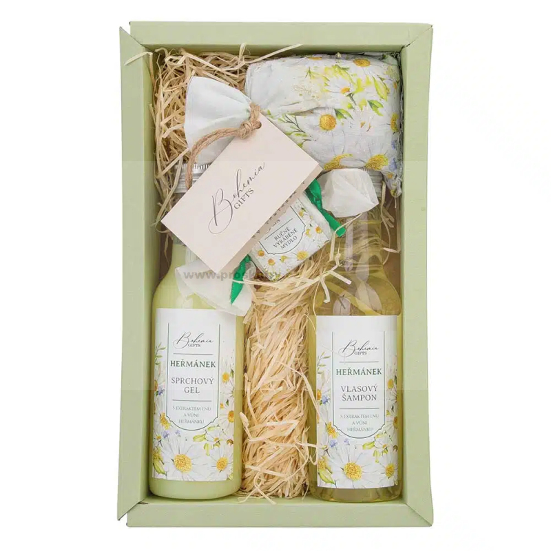 Kosmetická sada heřmánek – sprchový gel 200 ml, šampon 200 ml, sůl 150 g a mýdlo 30g