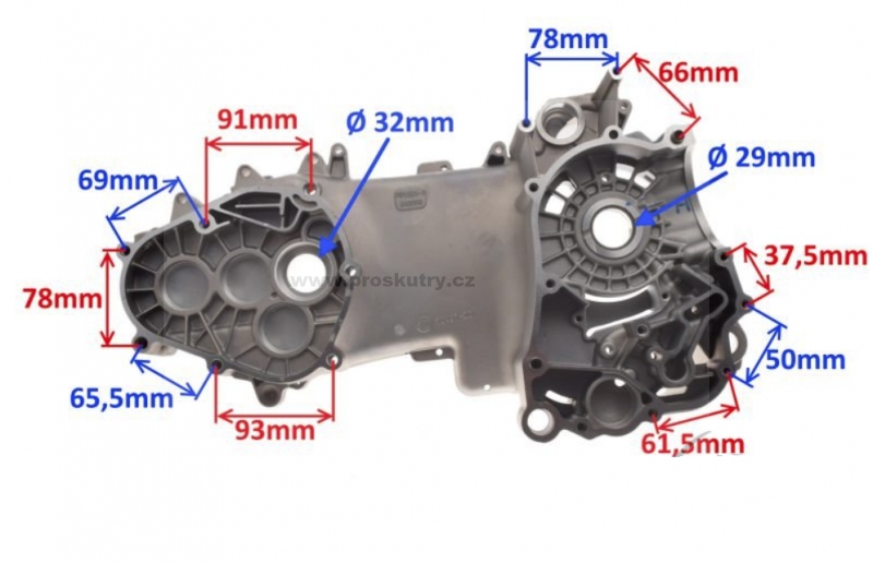 Hliníková skříň motoru, kartery 2dílné pro Sachs 50 KFS, LFS, LFH, MLFB, LKS, MLKA X, H