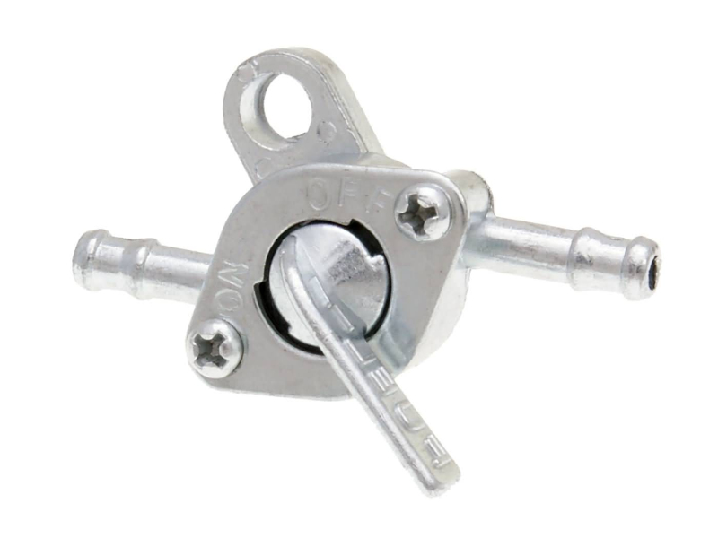 Univerzální ruční palivový kohout s 6mm připojením a jazýčkem. Palivový kohout se jednoduše zasune mezi palivové hadice.
