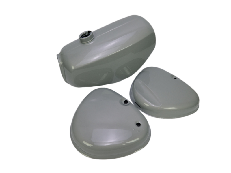 Kompletní sada palivové nádrže a vík schránek určená pro motocykly Simson S51 Enduro. Sada je ideální při renovaci motocyklu nebo jako náhrada poškozených karosářských dílů.