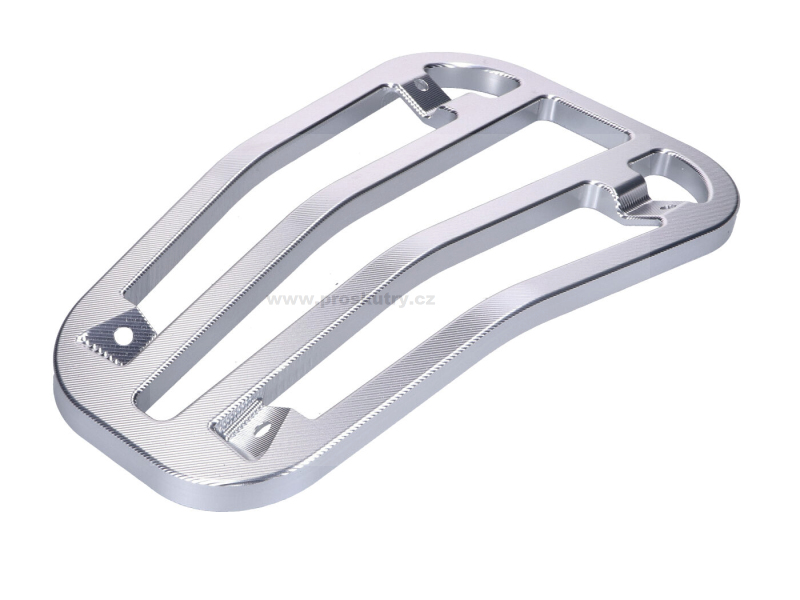 Nosič zavazadel / Průchozí nosič na horní kufr Moto Nostra, stříbrný, CNC pro Vespa Primavera 50-150ccm, Sprint 50-150ccm