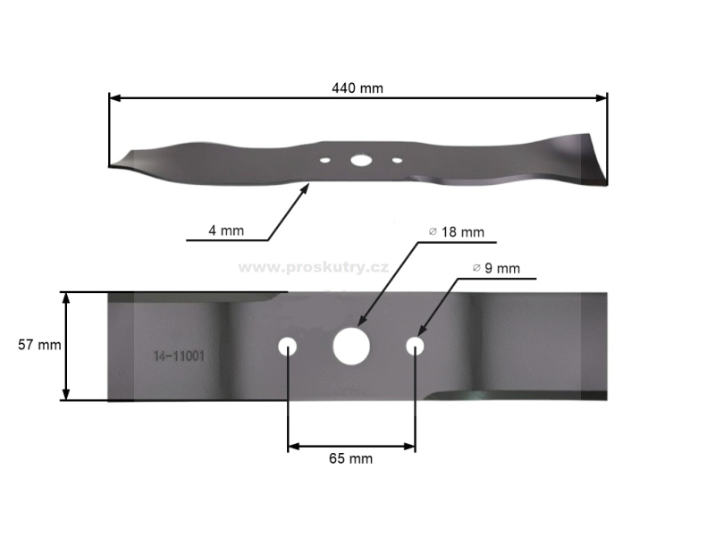 Nůž mulčovací 44 cm (17") pro motorové sekačky Stiga Castel Garden Alpina Variolux Mac Garda Homelite (OEM 81004365/3 81004365 81004365/0 1111-9143-01