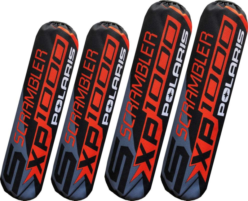 Textilní ochranné kryty tlumičů určené pro čtyřkolku Polaris Scrambler S 1000. Slouží k ochraně tlumičů před blátem, vodou, pískem a nečistotami, čímž prodlužují životnost tlumičů a zajišťují optimální funkci podvozku i v náročném terénu.