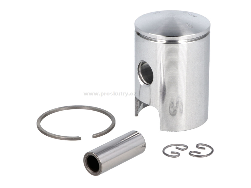 Kompletní pístní sada pro válce o objemu 50 ccm s pístními kroužky, pístními čepy a pojistnými klipy pístu, vhodná pro sady válců Puch Maxi pro dvoutaktní motory.