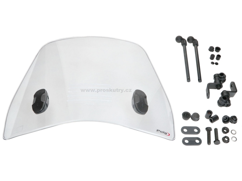 Toto čelní sklo skútru se montuje na 2 montážní body. Držáky jsou součástí dodávky.