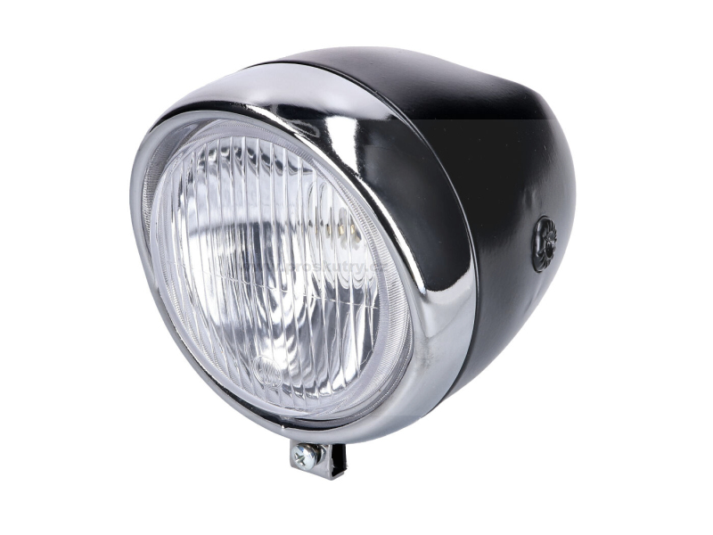 Přední černé kulaté světlo 130mm s chromovaným rámečkem pro moped Puch