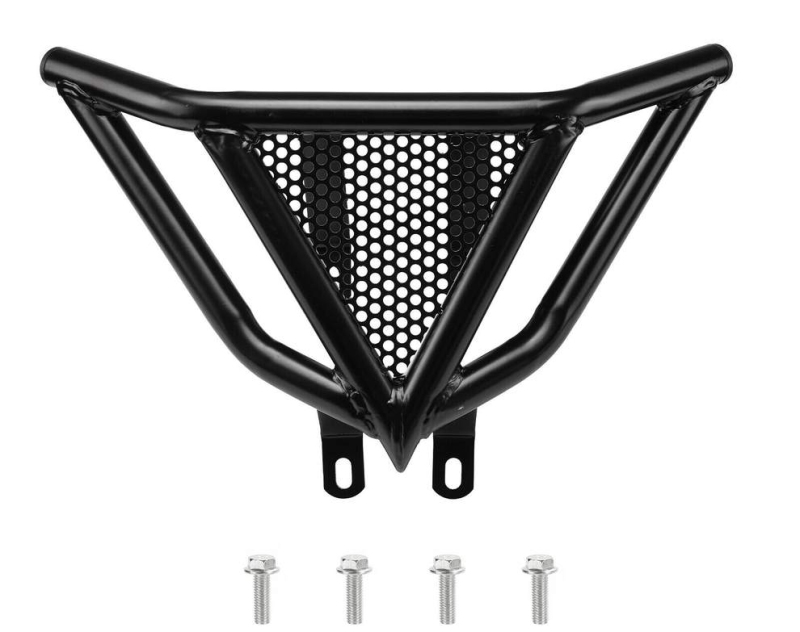 Pevný černý přední nárazník určený pro Yamaha Raptor 700 (2006-2022) – poskytuje efektivní ochranu přední části stroje v náročném terénu a zároveň dodává agresivní vzhled.