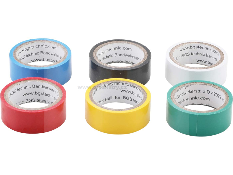 Sada 6 PVC izolačních pásek v různých barvách (žlutá, červená, modrá, zelená, černá, bílá)