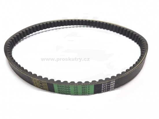 Kvalitní řemen variátoru Bando určený pro skútry Peugeot Elyseo, JetForce a Elystar 125 4T (kód dílu 737830). Tento řemen zajišťuje efektivní přenos výkonu motoru na variátor, což ovlivňuje akceleraci a maximální rychlost skútru.