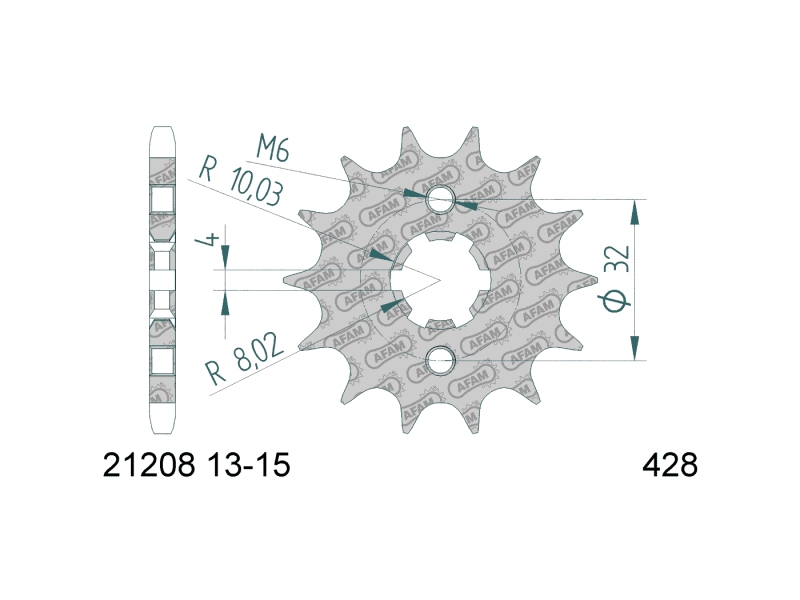 Řetězové kolečko AFAM 14 zubů 428 pro Yamaha Motor 125 LC YI-3 Beta, HM, MH, Rieju, Yama