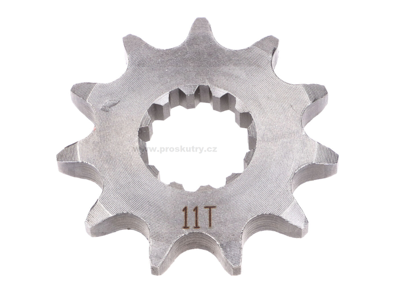 Řetězové kolo 11 zubů, rozteč řetězu 428, vhodné pro motory Minarelli AM. Změnou počtu zubů na rozetě předního pohonu můžete ovlivnit rychlost nebo zrychlení. Vyšší číslo než původní obvykle znamená zvýšení maximální rychlosti a mírně nižší zrychlení, pokud zadní rozeta zůstane nezměněna. Nižší počet zubů má za následek větší zrychlení a nižší maximální rychlost. I rozdíl 1 nebo 2 zubů vede k významným změnám.
