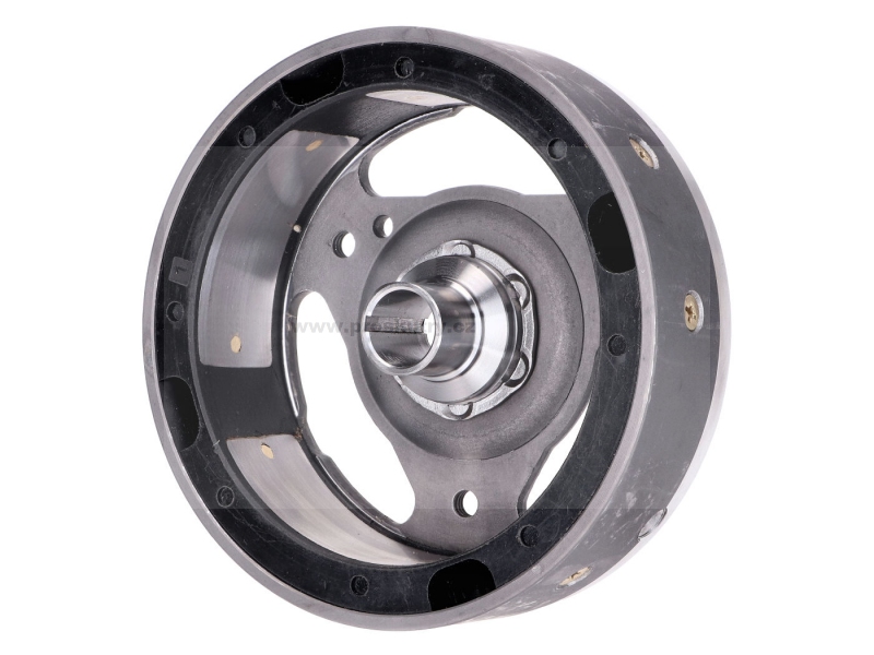 Rotor pro alternátor levotočných motorů s přerušovacím zapalováním vhodný pro Puch Maxi E50. Tento rotor je dobrou replikou původního setrvačníku Bosch nebo Ducati.
