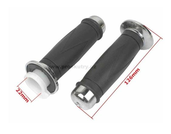 Kvalitní univerzální rukojeti s délkou 125 mm a vnitřním průměrem cca 20 mm, ideální pro skútry, čínské čtyřkolky a další podobná vozidla. Nabízejí pohodlný úchop a moderní vzhled díky elegantním stříbrným koncovkám. Snadná montáž a dobrá odolnost vůči opotřebení.