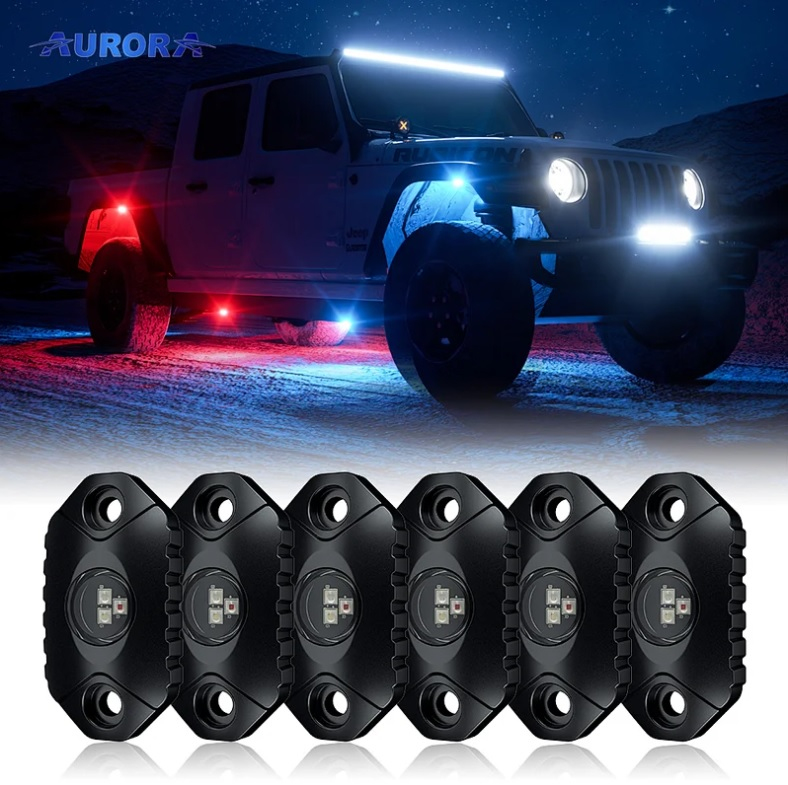 Kompletní sada 6 RGB LED světel pro podsvícení vozidla – vysoce jasná, univerzální montáž.