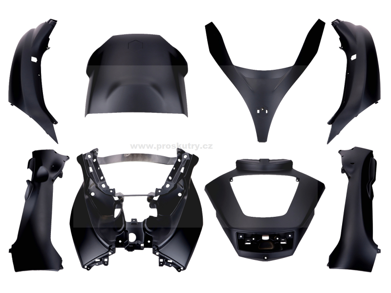 Kompletní sada kapotáže v elegantní černé barvě, určená pro skútry Piaggio MP3 125–500 ccm modelových let 2008–2012.