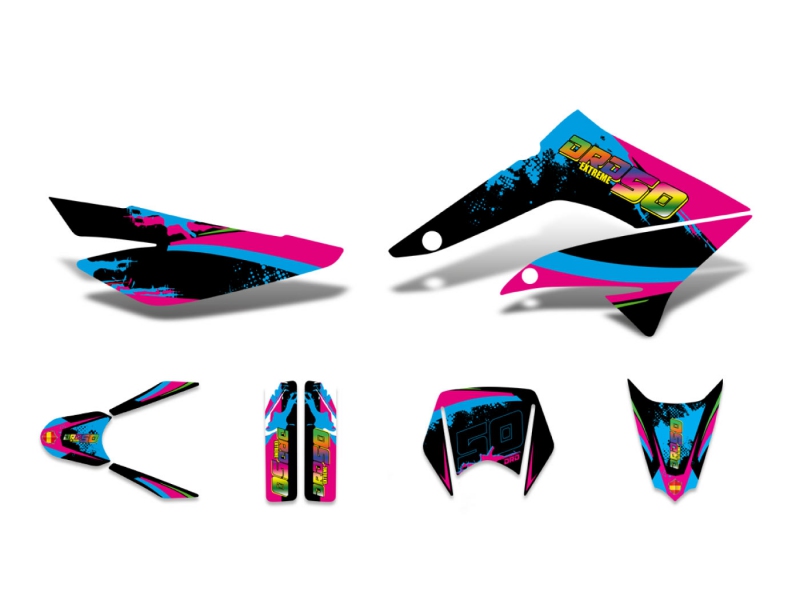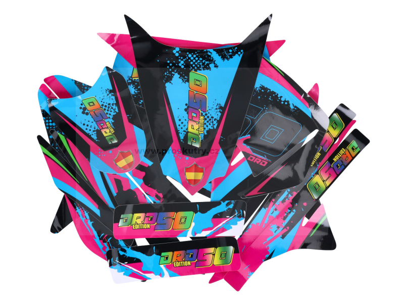 Sada dekorů / samolepek černo-růžovo-modrá lesklá pro Derbi Senda DRD 11-17.