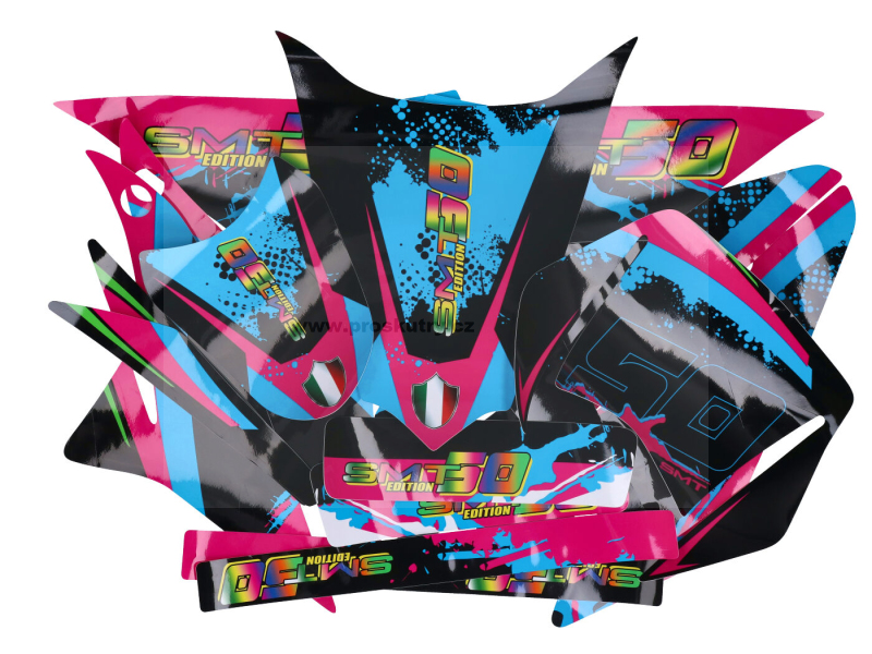 Sada dekorů / samolepek černo-růžovo-modrá lesklá pro Gilera SMT 11-17