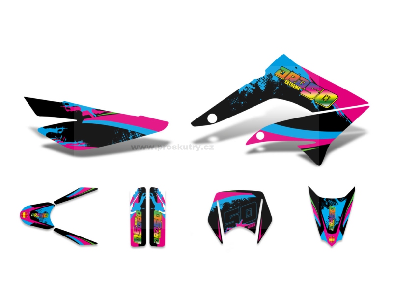 Sada dekorů / samolepek černo-růžovo-modrá lesklá pro Derbi Senda DRD 11-17