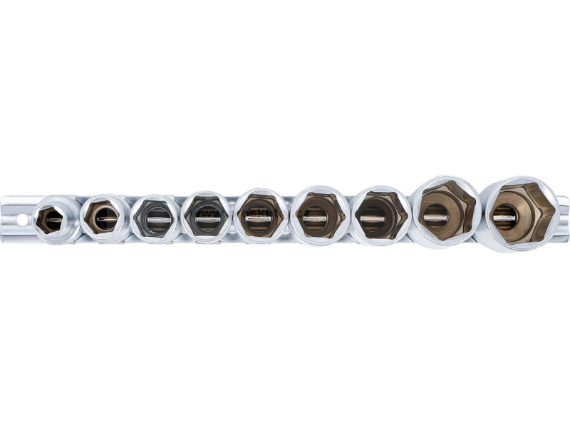 9dílná sada metrických šestihranných nástrčných klíčů.