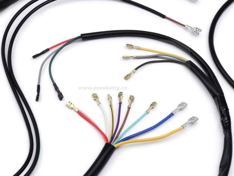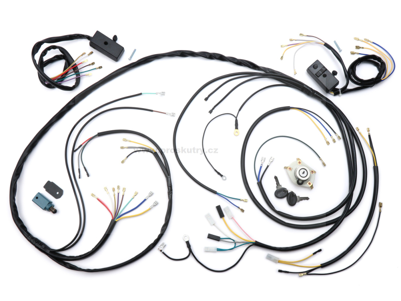 Sada kabelového svazku včetně spínače BGM ORIGINÁL 3-pinový regulátor napětí, klakson, základní deska zapalování střídavého proudu s 5 kabely.