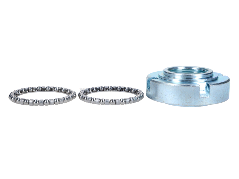 Sada obsahuje všechny důležité komponenty pro výměnu opotřebovaných ložisek, která mohou způsobovat vůli, drhnutí nebo nestabilitu při jízdě.
