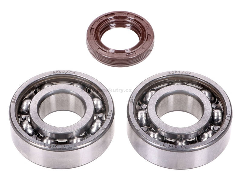 Sada vysoce kvalitních ložisek klikové hřídele Naraku SKF včetně prémiové hřídelového gufera FKM vhodná pro mopedy Piaggio Ciao, Bravo, Boxer.