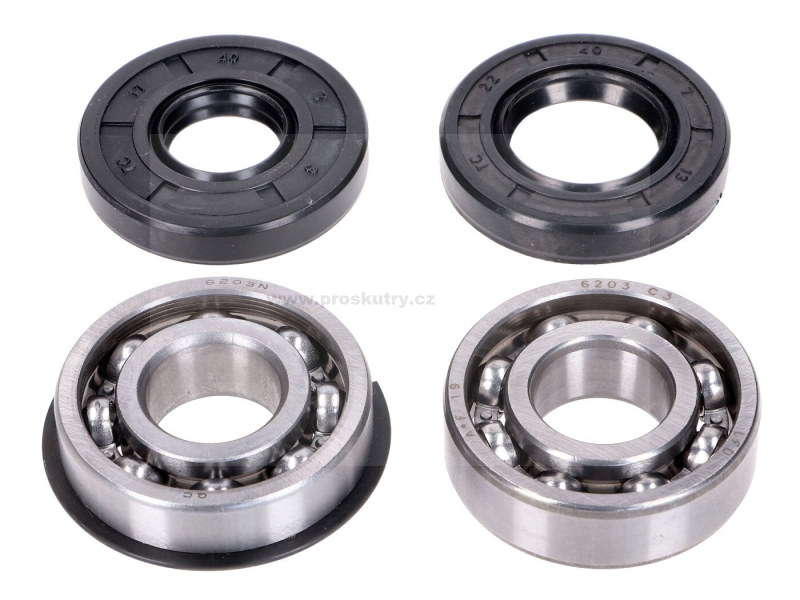 Sada ložisek klikové hřídele včetně hřídelových těsnění pro Puch Maxi E50 (starý motor).