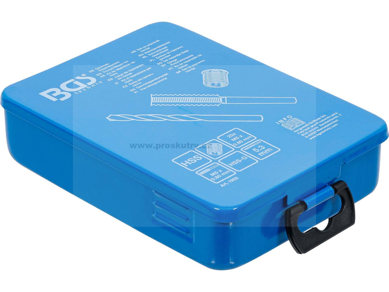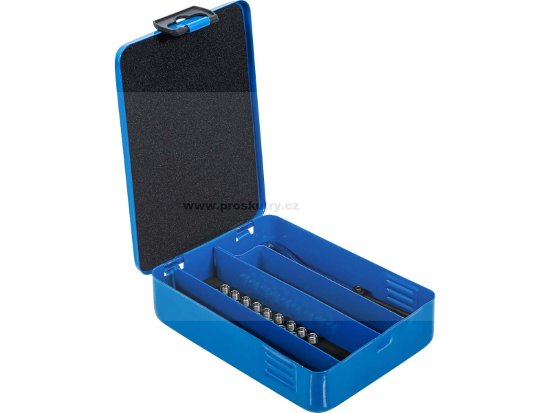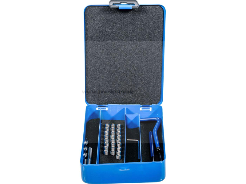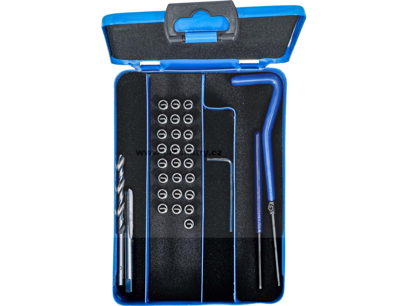 Sada na opravu závitů M5x0,8 mm obsahuje vše potřebné k opravě vnitřních závitů v oceli, litině a hliníku.
