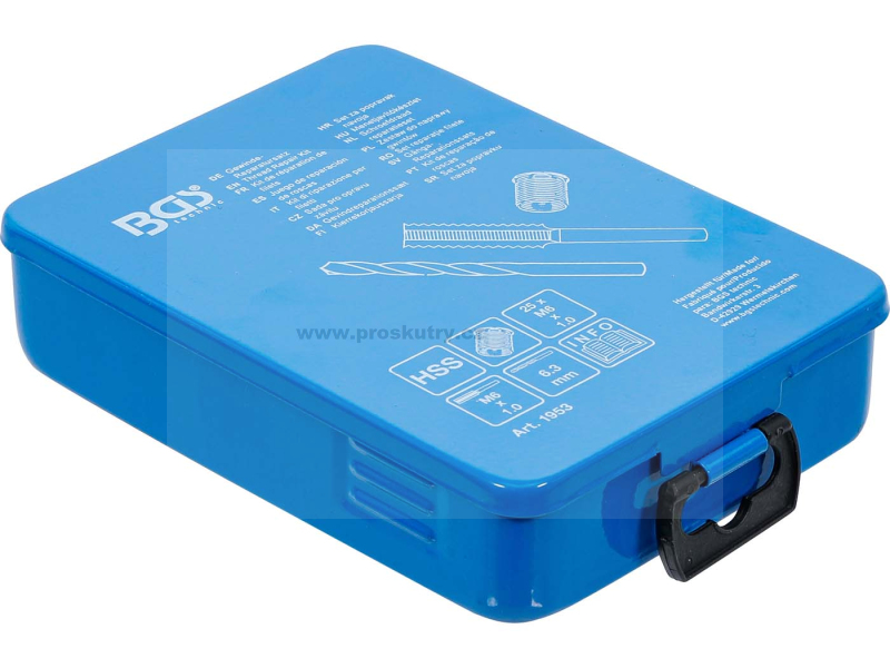 Sada pro opravu závitů M6x1,0 mm obsahuje vše potřebné k opravě vnitřních závitů v oceli, litině a hliníku.