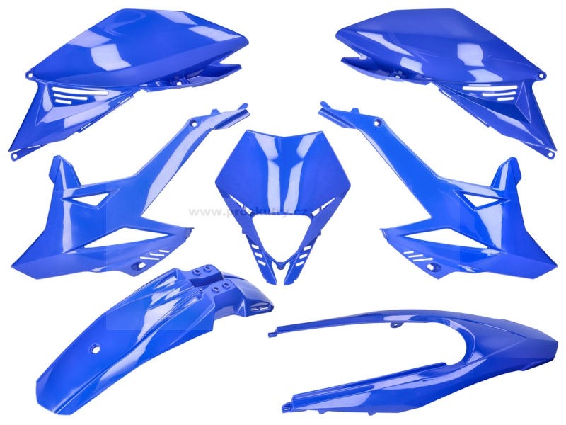 Kompletní 7-dílná sada dílů kapotáže v modré barvě vhodná pro převodový moped Beta RR 50 od roku výroby 2012.