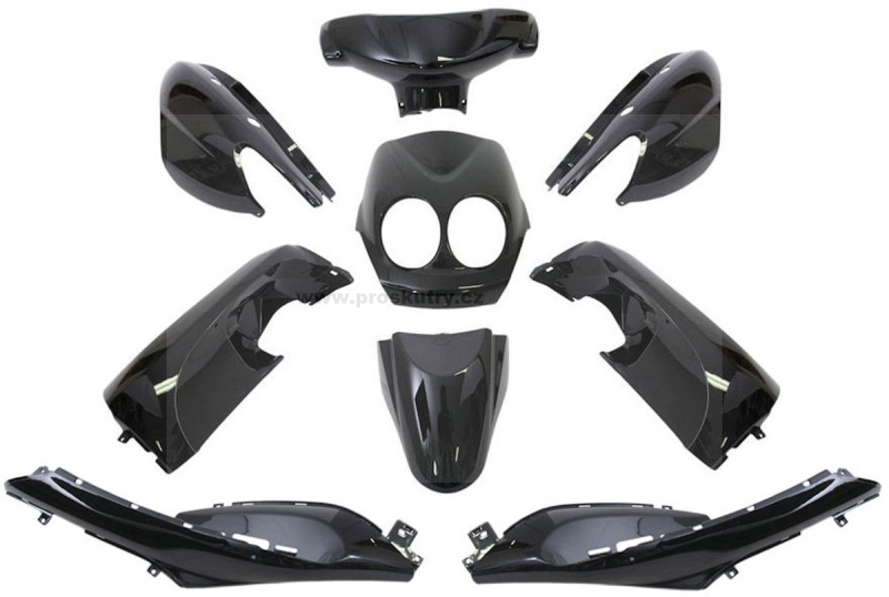 Sada dílů kapotáže vyrobená z plastu, lakovaná. Drobné díly potřebné k montáži, jako jsou šrouby a spony a matice těla, nejsou součástí dodávky.