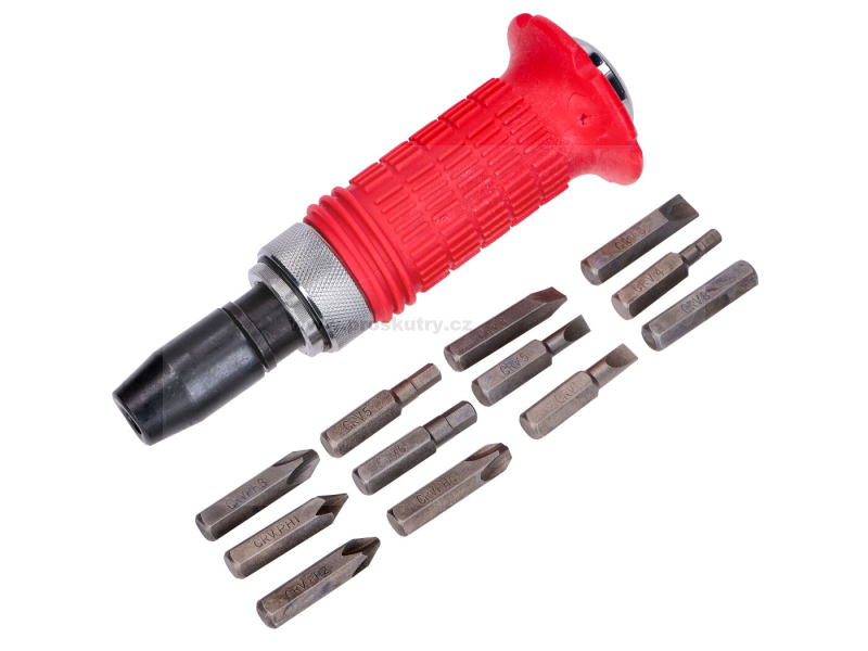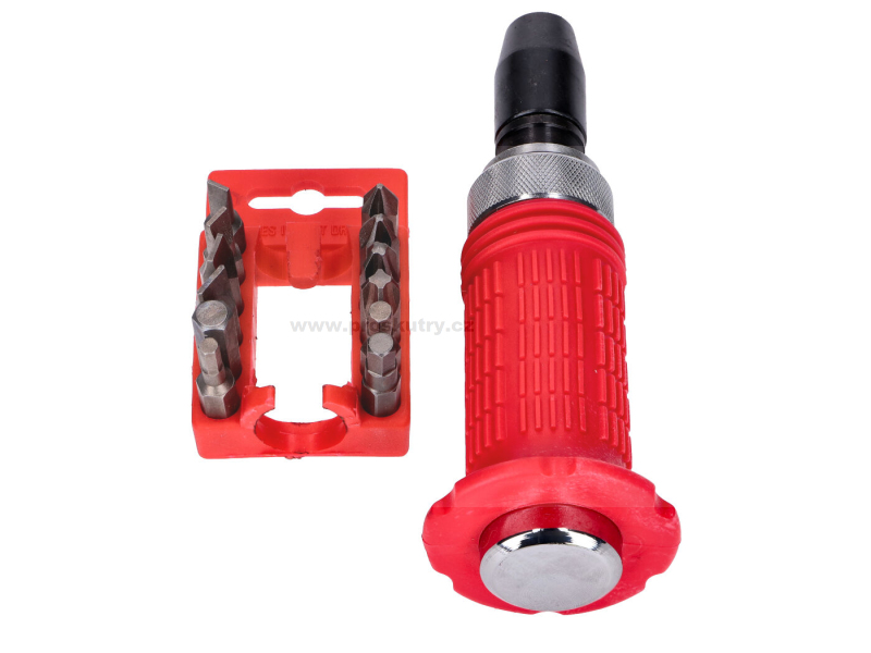 Rázový šroubovák má měkkou rukojeť s protiskluzovou ochranou.