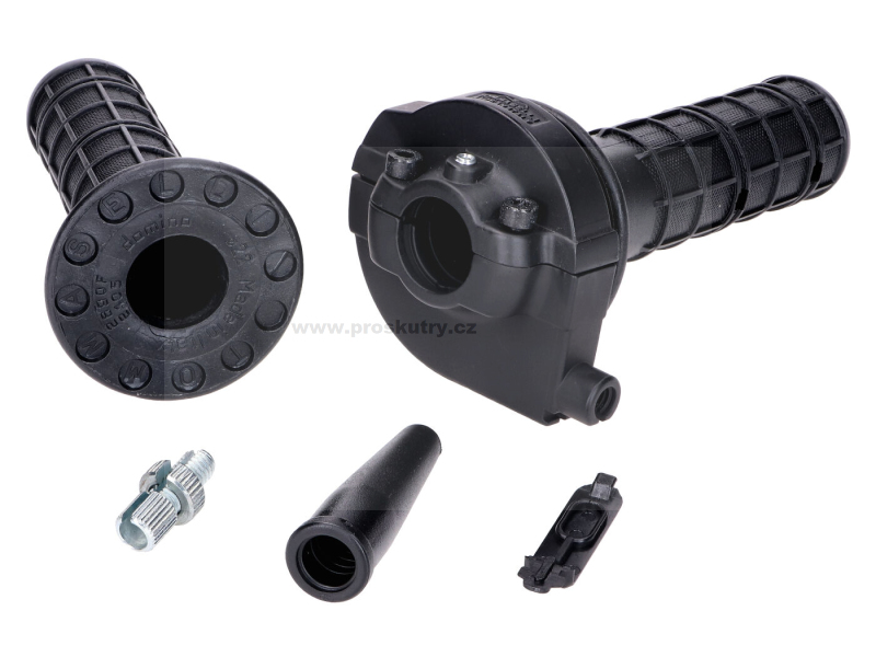 Sada rukojetí plynu Domino krátký zdvih 2,3° černý hliník na řidítka 22mm - univerzální
