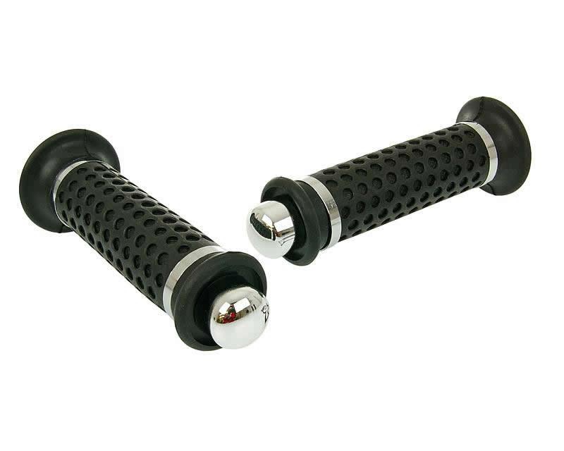 Velmi pěkné gumové rukojeti TNT. Tyto gumové rukojeti jsou k dispozici s kuželovými nebo zaoblenými konci řídítek. Vhodné pro všechny řídítka o průměru 22 mm. (to je 98% všech běžných skútrů) Pro rukojeti plynu vpravo je guma řídítek s větším průměrem.