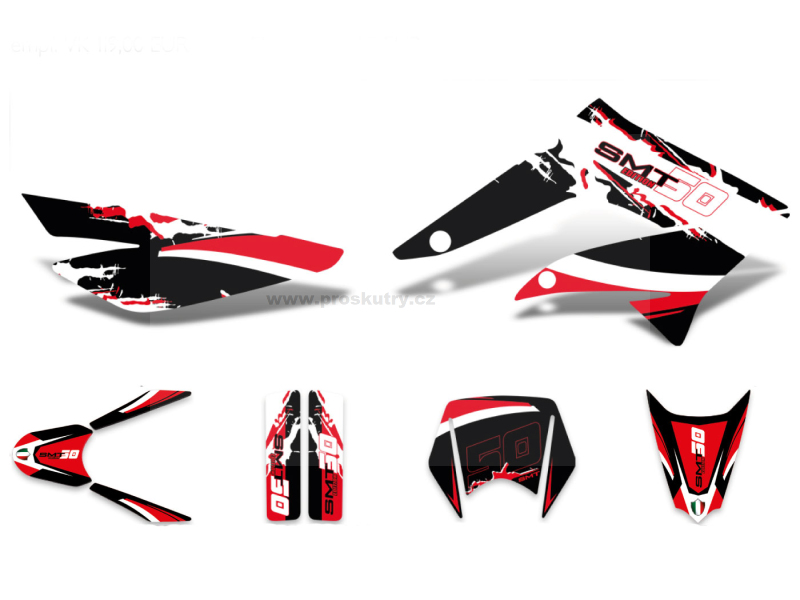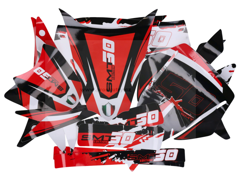 Naprosto precizně vybroušený dekor v lesklé černé, bílé a červené barvě. Vyrobeno v Německu. Vhodné pro Gilera SMT 50 rok výroby 2011-2017.