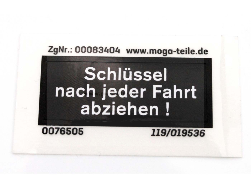Originální nálepka na kokpit, špičková kvalita, vyrobeno v Německu, aktuální produkce. Pasuje na modely Hercules, Prima, M, HR Hobby Rider, K 50, MK, KX, Ultra. Barva: černá/bílá. Rozměry: 40/15 mm. OEM číslo: 204.947.20.27.